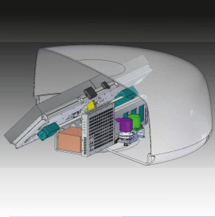 This design can host inside of his rugged kevlar dome also the data modem in order to avoid coaxial cables or external RF components for maximum flexibility, fast installations and zero signals loss. In fact the antenna is reachable with only one feeding ethernet Cat.5 cable + DC power from 12 up to 48Vcc.